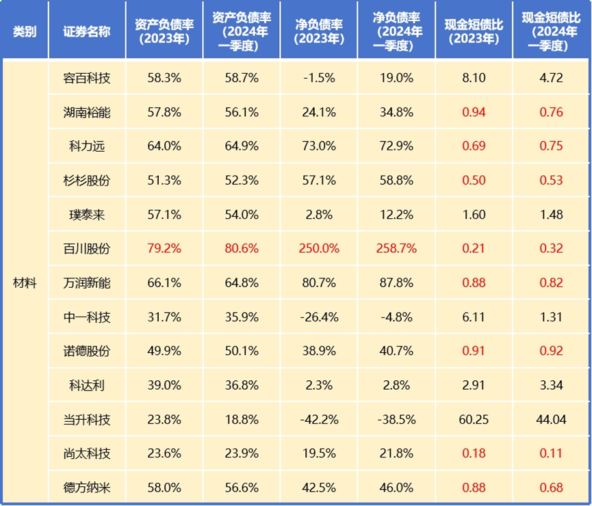 其中,科力远、百川股份、万润新能负债率偏高,后续债务融资空间受限。