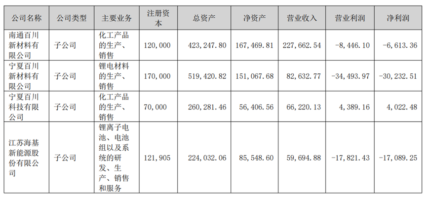 百川股份大上产能的同时,锂电业务亏损却越来越严重。从2023年年报中“宁夏百川新材料”和“海基新能源”的情况来看,两家子公司营收加起来大约只占集团2023年营收的三分之一,却产生了集团大部分亏损。百川股份2023年计提的3.8亿存货跌价准备,主要就在新材料、新能源板块,也就是锂电业务。