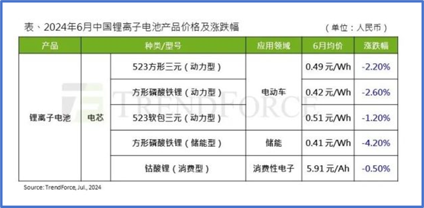 电池是储能产业链条的核心环节,是主战场。电池成本占到储能系统的60+%,据TrendForce数据,6月储能型电芯的平均价格已经下降到0.41元/Wh。电芯价格的持续下降带动储能系统终端报价不断刷新新低。