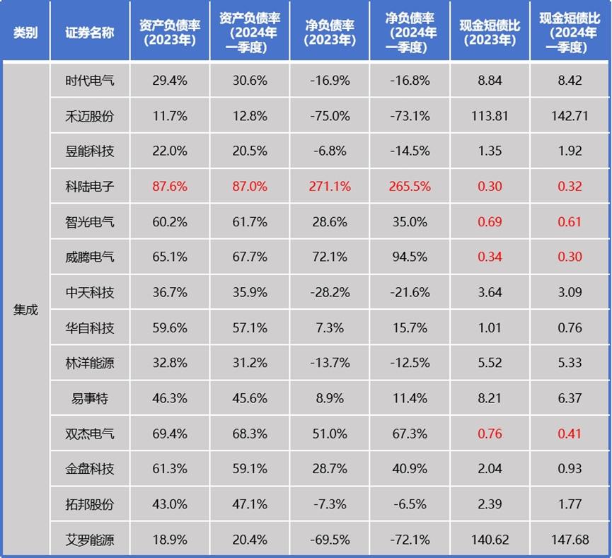 整体来看,储能系统集成企业的负债状况大多比较稳健,时代电气、禾迈股份行业龙头地位稳固。