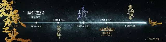 3月1日,华谊兄弟与陈国富导演的工夫影业联合推出未来三年5部系列大片的合作计划,这个系列电影计划包括:徐克导演,陈国富、施南生监制的“狄仁杰”系列第三部《狄仁杰之四大天王》,定档于2018年春节上映;根据同名手游改编的电影《阴阳师》,定档2018年国庆上映;经典“画皮”系列《画皮前传》将于2019年暑假上映;根据天下霸唱原著改编的盗墓经典《摸金校尉之九幽将军》将于2019年国庆上映;还有一部被认为“不赚钱”的电影—根据世界电影大师黑泽明遗作剧本改编的《黑色假面》,于2020年国庆档上映。