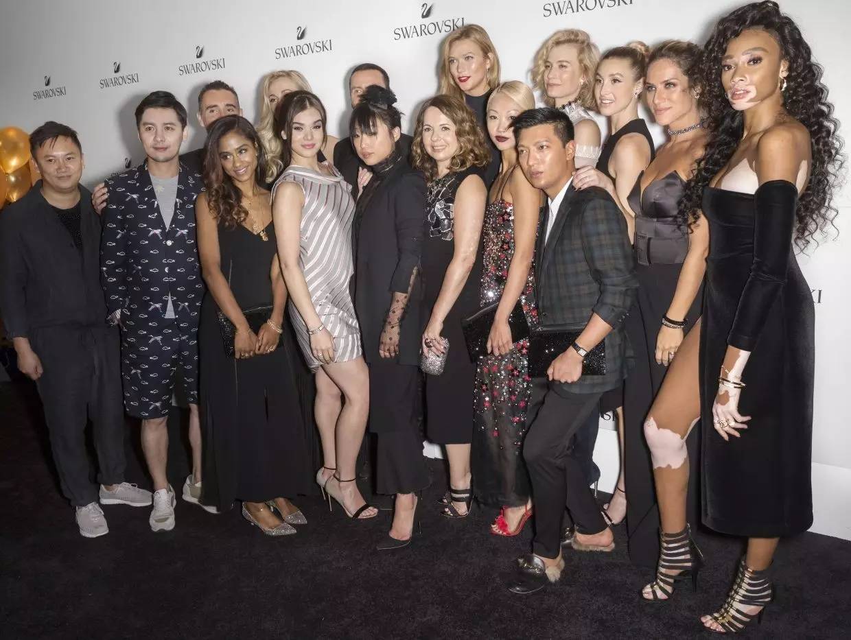 叶嗣(Gogoboi)(左二)在巴黎银行奢侈品部推出的中国博主时尚影响力排行榜上稳居首位 图为其参加施华洛世奇在纽约的全球发布活动(Shutterstock)