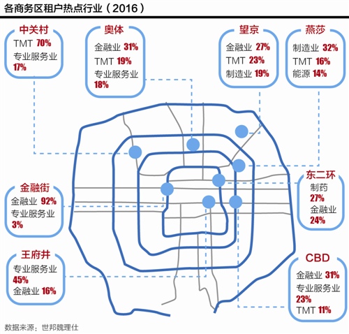值得关注的是,随着中资企业活跃度增加,北京写字楼市场也从最早伴随着涉外高档酒店兴起的单一商圈,而逐渐出现比肩国际标准的多中心写字楼商圈。