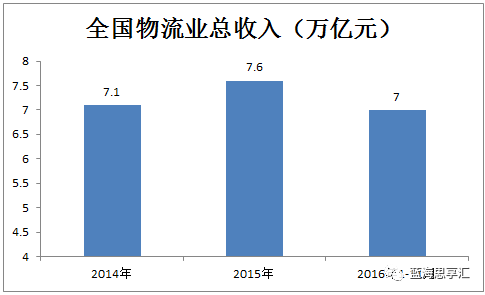 2016年1-11月,物流业总收入7.0万亿元,同比增长5.3%,物流市场规模继续扩大。