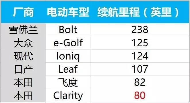 没错,续航80英里这个点,确实很容易招黑,就连本田自家那台纯电动飞度,续航都达到了82英里。美国市场上的其它纯电动车型,续航普遍在100-200英里以上。