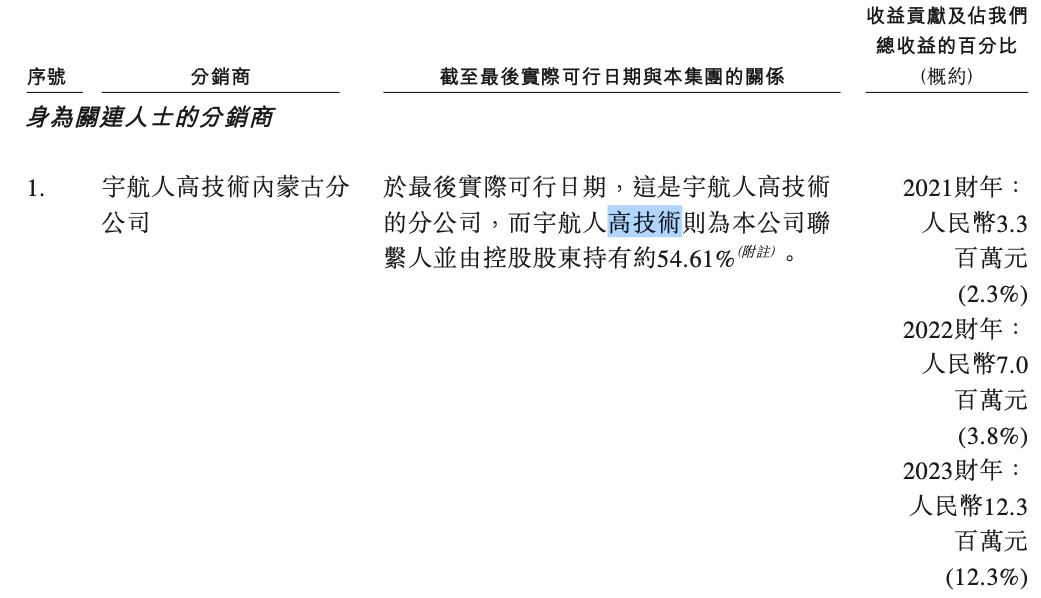 《招股书》显示,宇航人高技术内蒙古分公司在2021年-2023年,为宇航人贡献营收330万元、700万元和1230万元,占总收益的比重为2.3%、3.8%和12.3%。