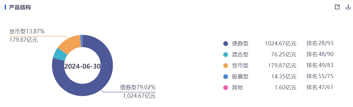 截至今年二季度末,国联基金固收类产品,即债券型、股票型规模分别约为1025亿元、180亿元,合计1205亿元,占比约93%,其中债券型产品占比就达到了79%。