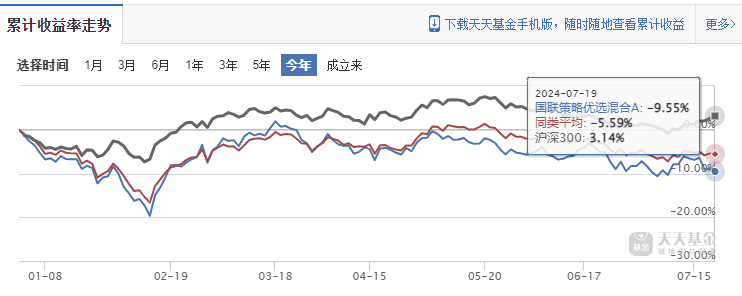 再看看国联基金目前规模较大的权益类产品——国联策略优选混合A类基金,它成立于2019年5月,但年内亏了近10%,同样跑输同类平均和沪深300。