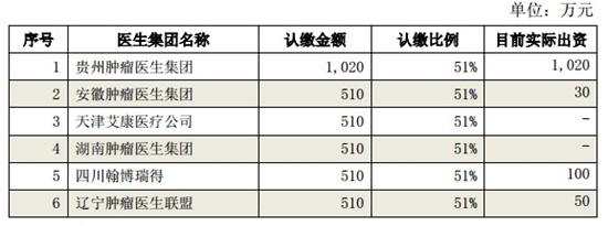 为了执行所提出的“大肿瘤”战略,在2016年起益佰制药先后成立了6家肿瘤医生集团,分别位于贵州、安徽、天津、湖南、四川、辽宁。6家肿瘤医生集团合计出资3570万元,截止目前,实际出资1200万元。