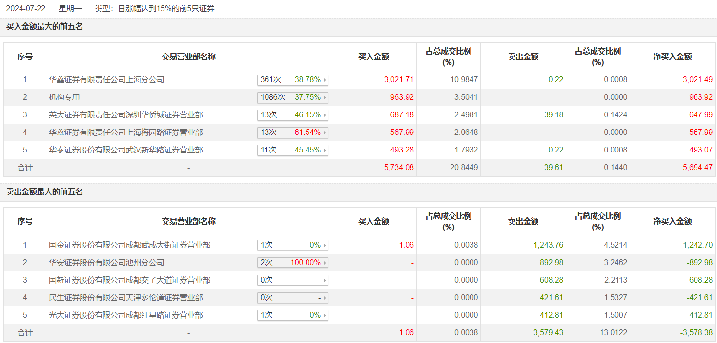 龙虎榜 | 恒锋信息今日涨20%,一机构净买入963.92万元