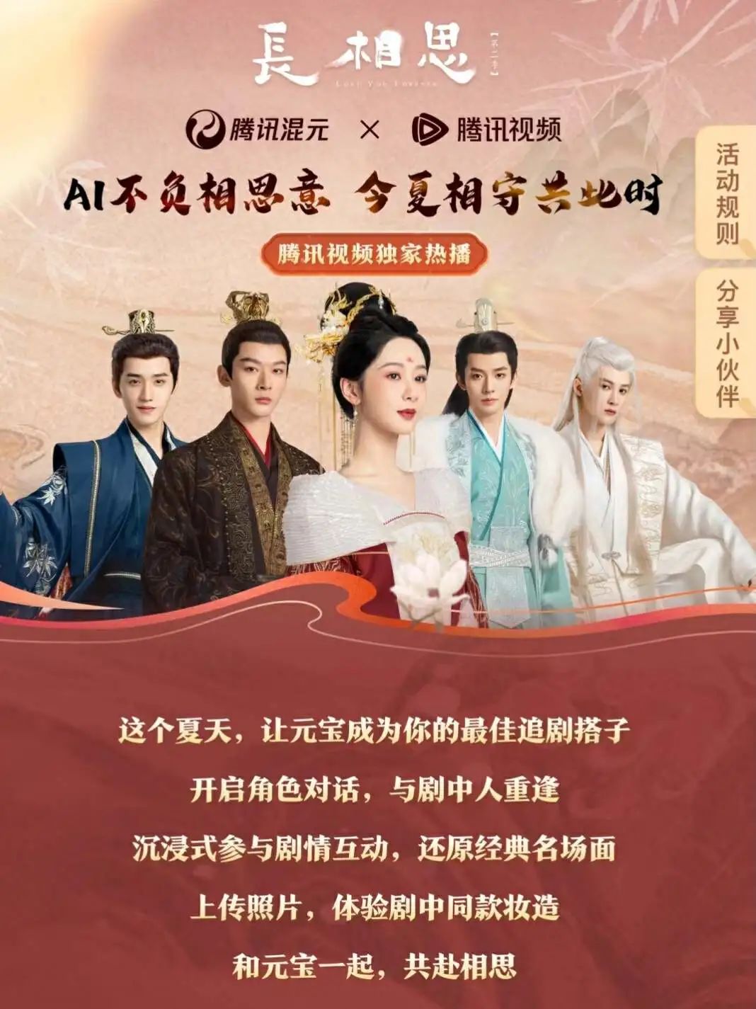 腾讯元宝相关负责人表示,未来会针对此类影视剧的IP,研究更多与AI的结合点,在AI如何拓展影视剧的边界,如何能够让用户更多地参与到剧的共创,以及如何通过角色来为用户提供情绪价值上进行更多的探索。