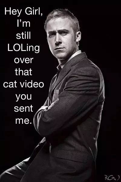 还有一个叫“Fuck Yeah Ryan Gosling”的博客,这位粉丝每天发高司令的帅照,而且每张照片都要附上幻想中高司令对自己说的情话,每次都以Hey girl开头,差不多相当于我们所谓的表情包吧。