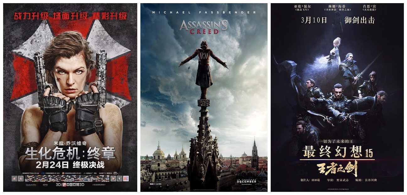 引进片在本月的爆发源自于春季档电影市场的空窗期,内地院线没有真正的票房大鳄,一大波好莱坞中低成本制作的动作商业大片被引进内地,比较代表的便是于同日上映的游戏改编电影《生化危机:终章》和《刺客信条》,如果算上三月初即将引进的CG电影《最终幻想15》,本月可以算是游戏迷的盛宴。