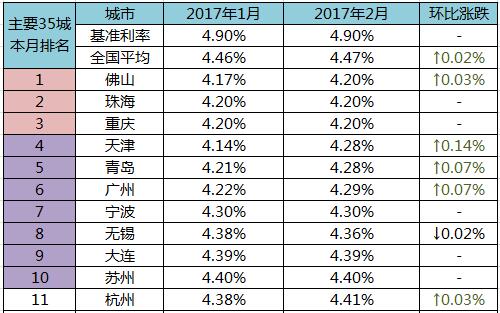 需要特别说明的是,天津自2016年5月开始连续9个月都是全国首套房贷平均利率最低的城市,然而在这个月,天津首套房贷平均利率大幅上涨0.14%,成为房贷收紧最为明显的城市,平均利率最低的城市为佛山,其首套房带平均利率为4.20% ,最高的为乌鲁木齐的4.9%。