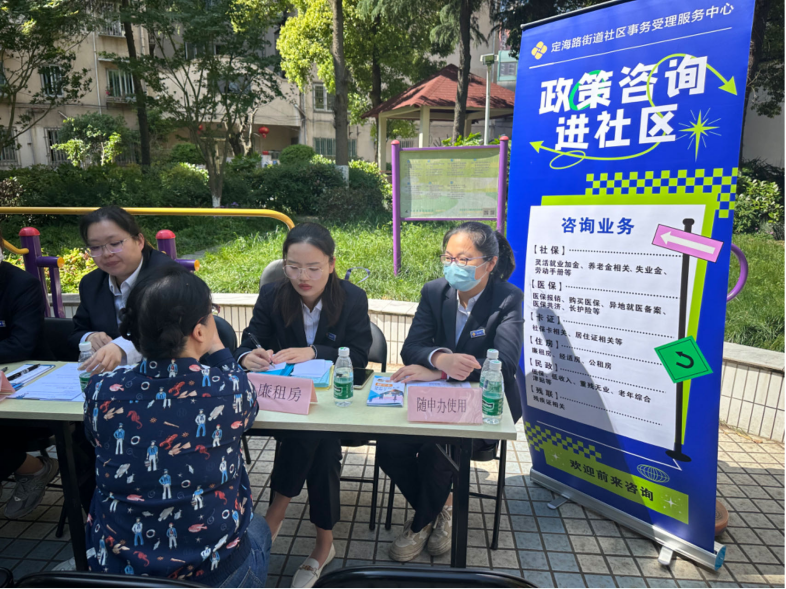 如何进一步提升“政策找人”精准度?定海路街道社区事务受理服务中心积极探索“跨前一步”服务模式,变“被动受理”为“主动服务”,组建了一支优质、专业的政务服务先锋队,深入社区和园区开展“一网通办”宣传活动,让社区居民和园区白领足不出户,就能知惠民政策,享“指尖服务”,擦亮政务服务金名片。