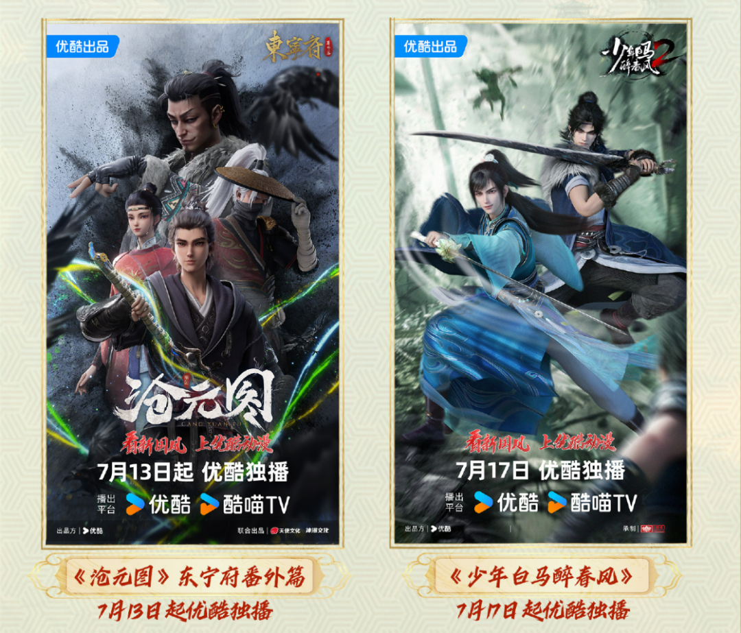 除了市场新晋黑马,优酷耗费大量心力的“少歌宇宙”也在持续发挥能量。根据《少年歌行》前传小说改编的同名动画《少年白马醉春风》,暑期开播的第二季将展现百里东君在天启城的新见闻,接档少歌外传《暗河传》于每周三播出。