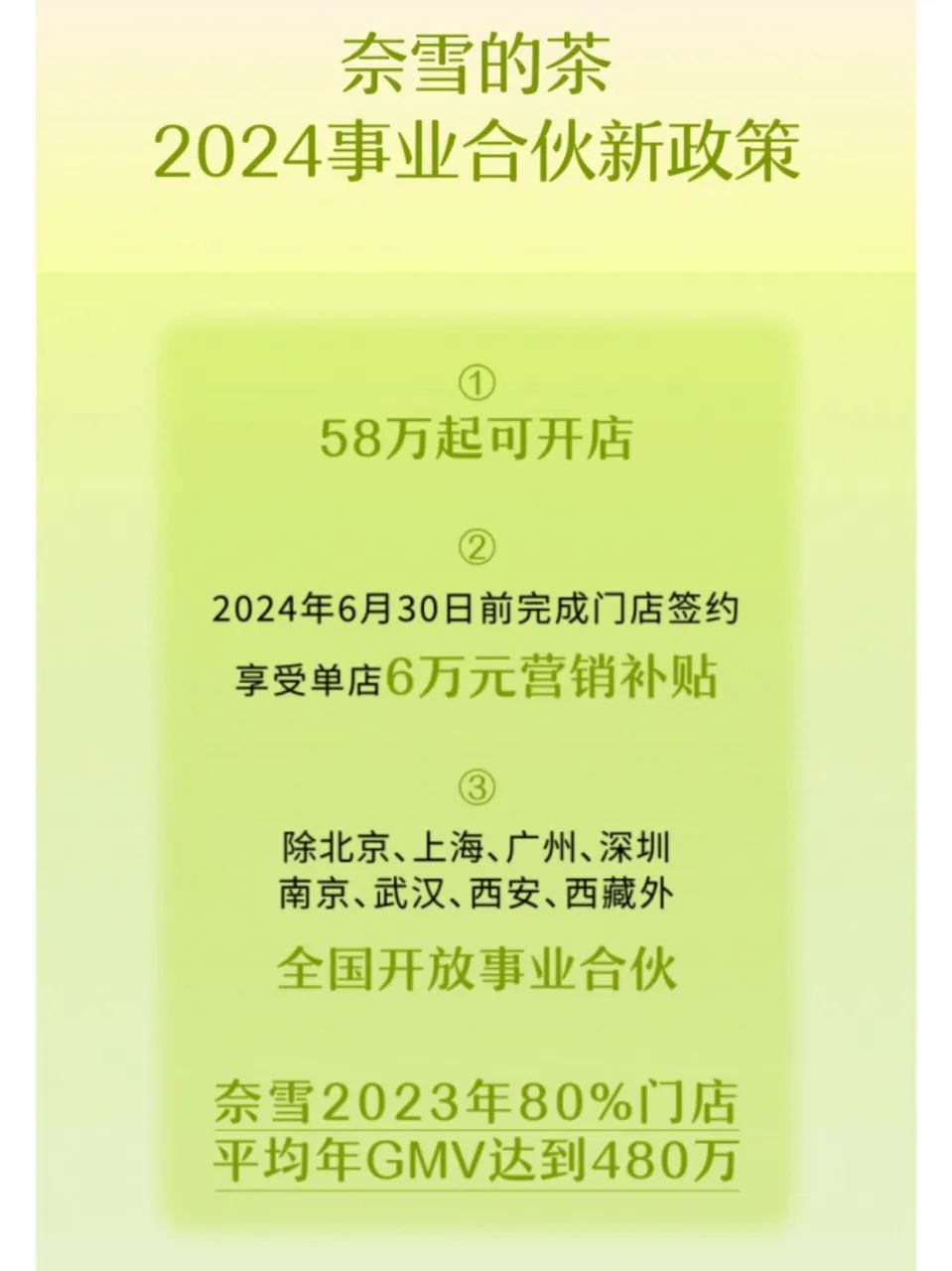 加盟商不买账,奈雪也没再坚持。今年2月,奈雪调整了加盟策略,降低对投资费用、门店面积和门店形式的要求,单个加盟店投资金额调整至58万元起。同时摒弃了大店模式,门店平米限制降为了40平方米左右。