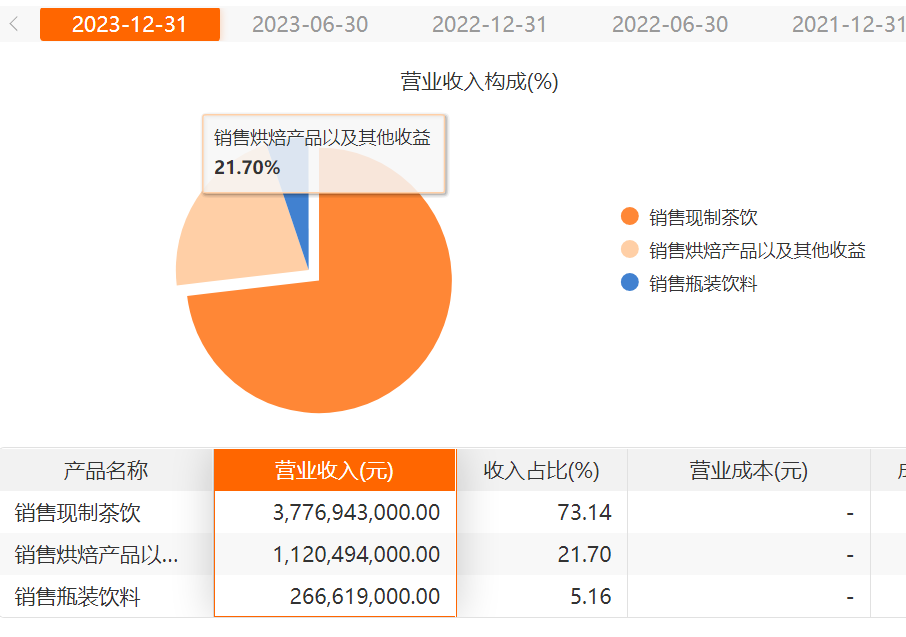 奈雪的茶不同产品的收入状况,图源Choice