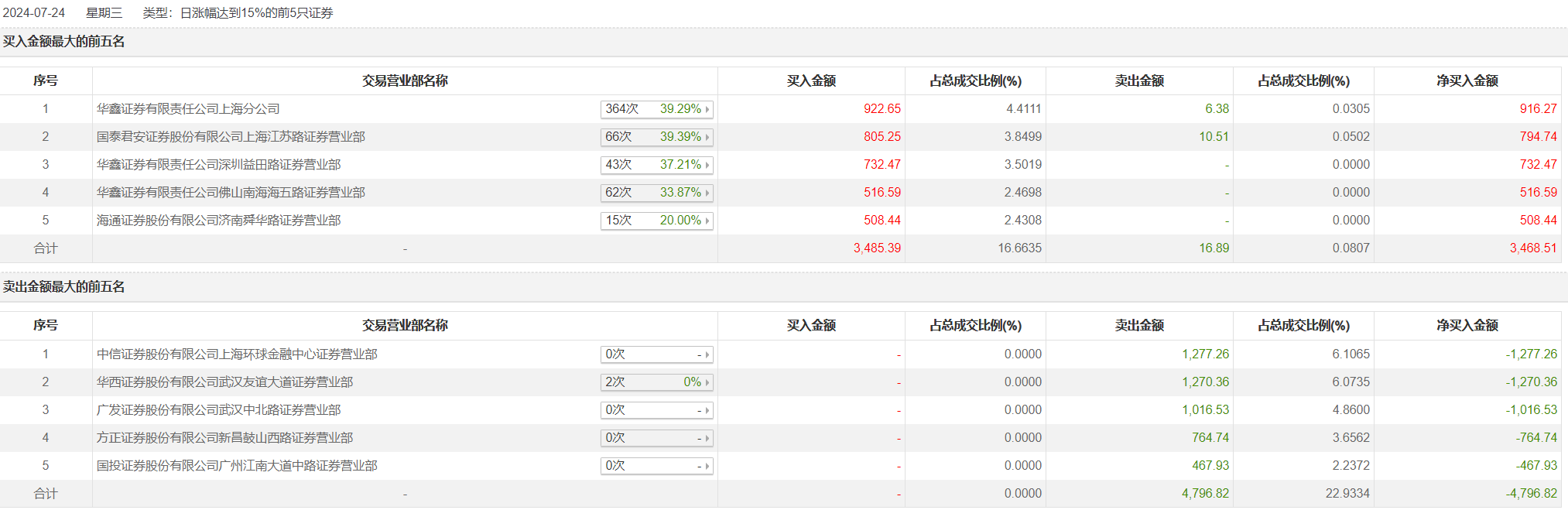 邵阳液压今日涨停,龙虎榜数据显示,上榜营业部席位全天成交8299.1万元,占当日总成交金额比例为39.68%。其中,买入金额为3485.39万元,卖出金额为4813.71万元,合计净卖出1328.32万元。