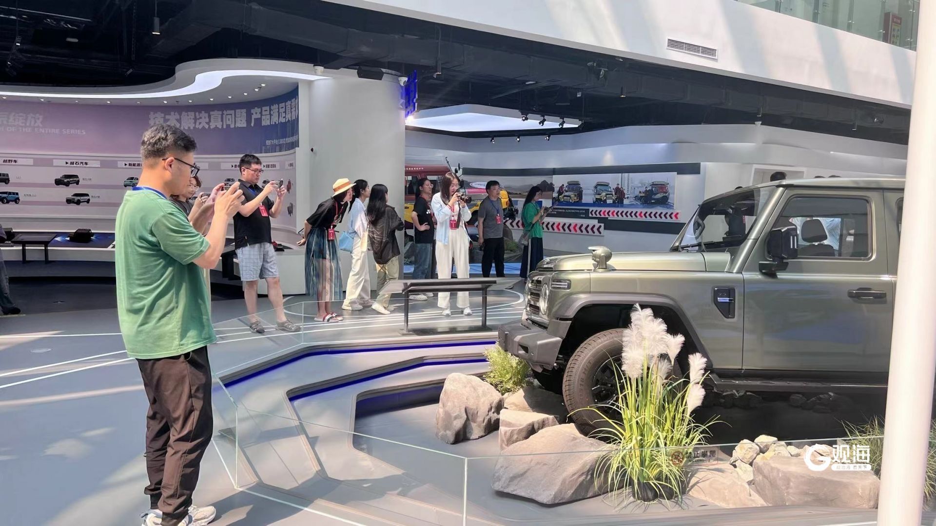 漫步在建筑面积达4229平方米的北京汽车制造厂汽车博物馆,馆藏整车、车辆模型、零部件、模具器具等相继映入眼帘,采访团一行在实地观摩中,通过文字、图片、影像、多媒体、实物等,了解北京汽车制造厂的发展历程、感知中国民族汽车工业不断壮大的辉煌。“在博物馆中,我们见证了从早期模仿到自主研发、设计的转变,看到了中国民族品牌如何将传统美学与现代科技融合,创造出既具有国际竞争力又富含中国特色的产品,深感震撼与自豪”自媒体大V飞鱼Tech说。