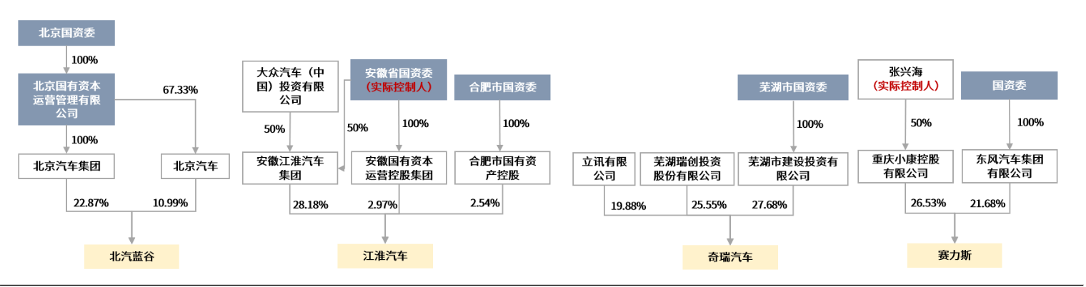 股权结构和沟通协调都是合作意愿的具象表现,存在一个顺序逻辑。就意愿来看,目前的三家车企中,与华为有更强合作意愿的车企是北汽蓝谷、江淮汽车。