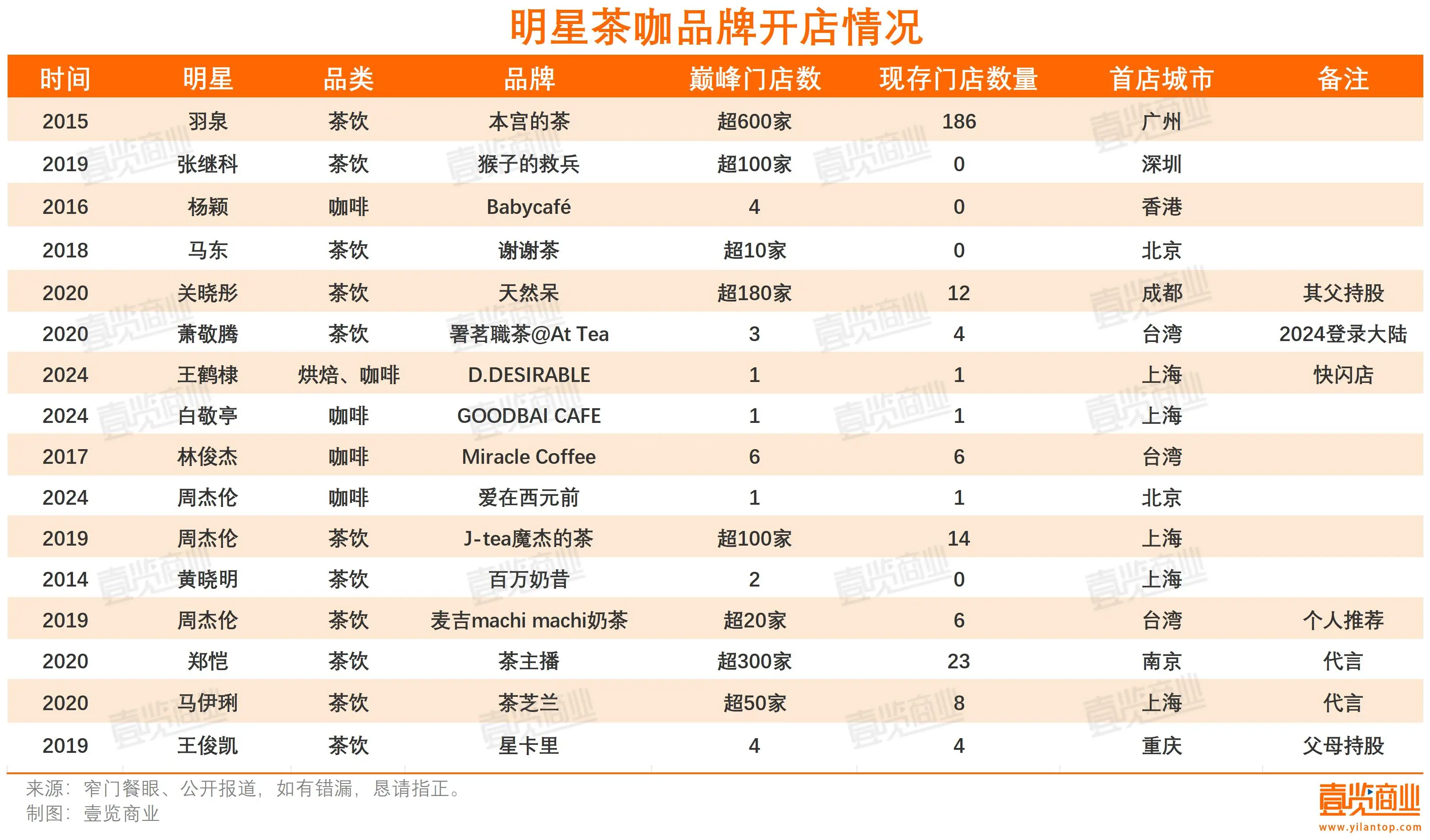 茶咖观察发现,越来越多明星开始入局茶咖赛道了。据茶咖观察不完全统计,2014年以来,至少有12位明星或其亲人开出13个茶咖品牌,3位明星因为代言和某一茶咖品牌深入绑定。