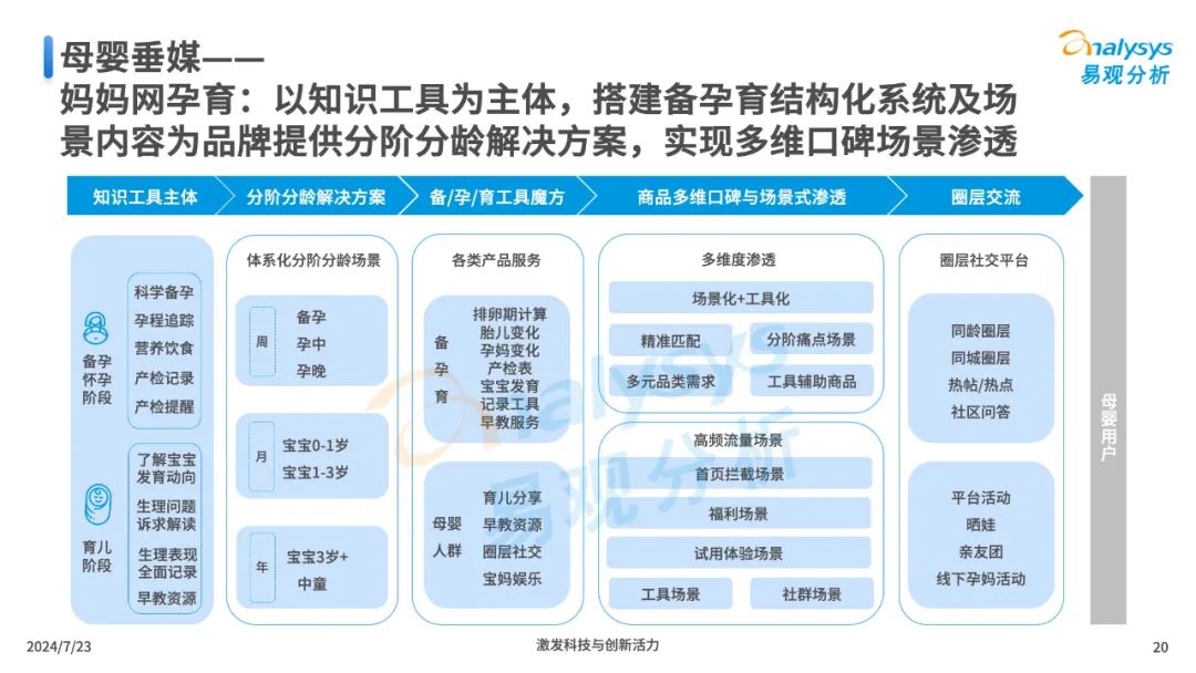 此外,母婴市场仍具有较大的消费增量空间。几乎所有品类的产品和服务都可以通过母婴市场再做一遍,从而推动这些品类的再次升级,以满足不断变化的消费者需求。在竞争激烈的市场中,持续陪伴用户的孕育旅程成为母婴平台和玩家们获得竞争优势的关键。通过与用户建立深度联系和信任,才能使其在市场中脱颖而出。