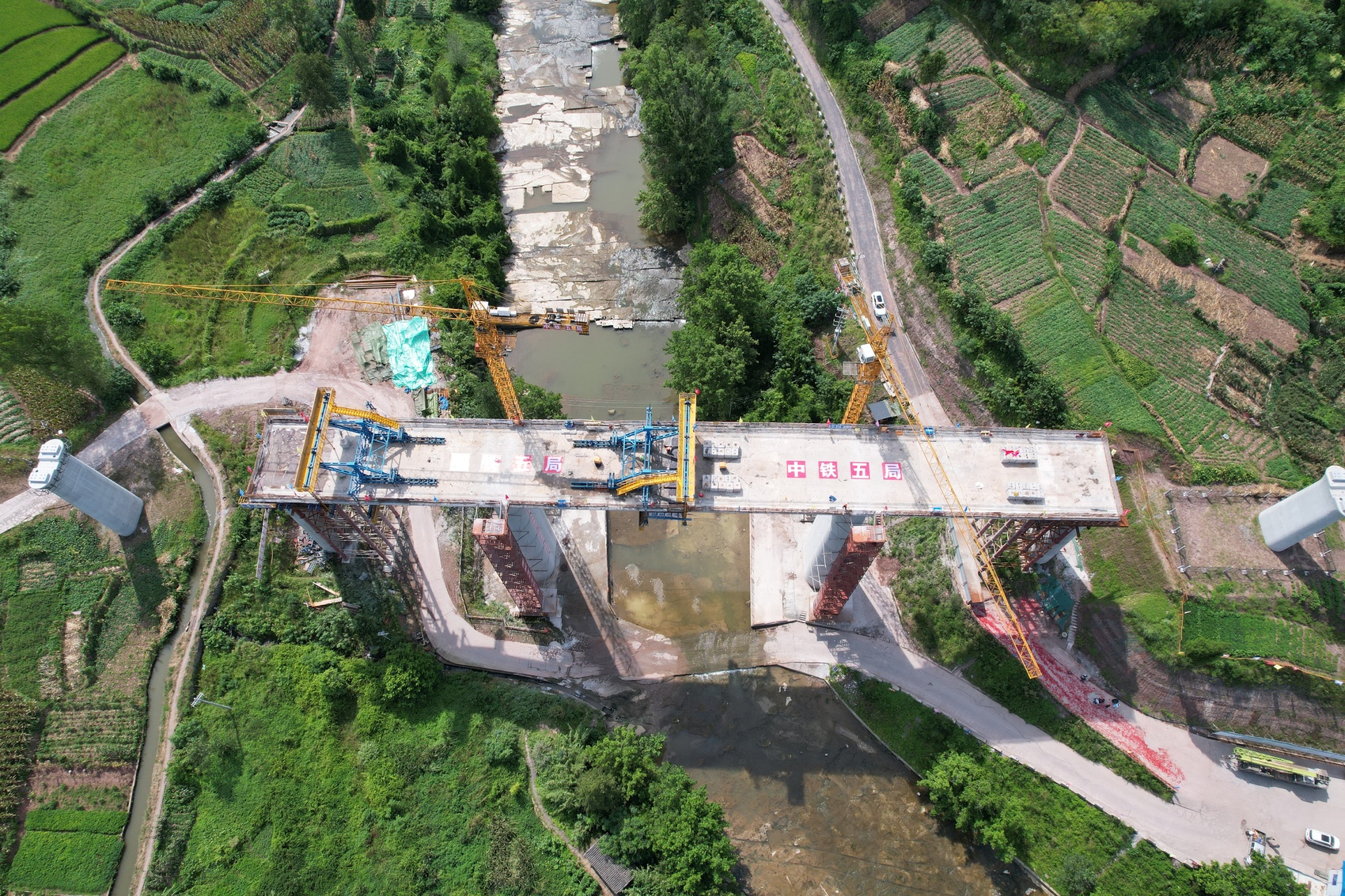 龙滩河特大桥位于四川省广安市境内,全长约1253米,由中铁二院设计,中铁五局承建。全桥由35孔简支梁和一联连续梁组成,其中连续梁跨越龙滩河,最大墩高达到44.5米。