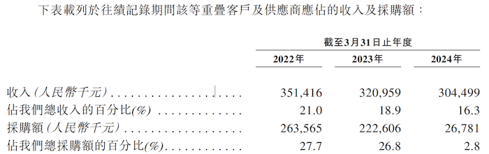 报告期各期,公司五大客户中的第四大客户同时还是颖通控股的供应商。同时,颖通控股的供应商中存在2022年、2023年3月31日止年度的2家、2家供应商还是客户的情况。报告期重叠客户及供应商应占的收入及采购额比例一度超过20%。