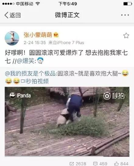 王思聪有时候对女朋友表现得也是挺深情的,比如前段时间,现任女友张小蒙在微博上转发了一条熊猫的视频,并配文“滚滚可爱爆炸了,想去抱抱我家七七!”
