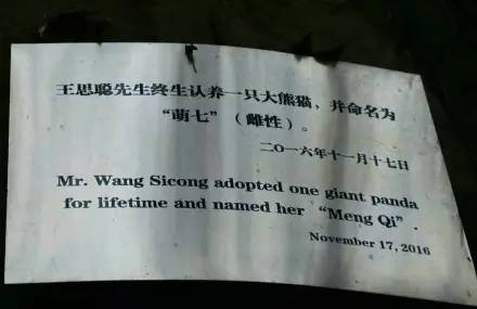 而七七是王思聪去年11月认养的一只熊猫,取名叫“萌七”,因为张小蒙的小名叫萌萌。