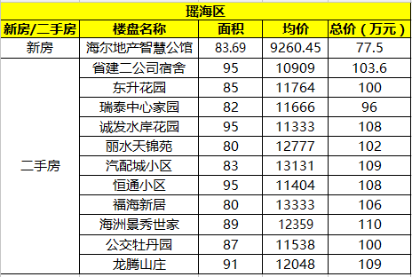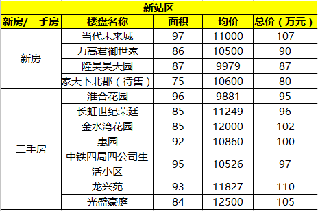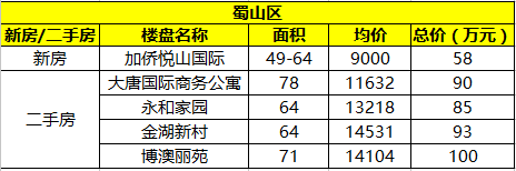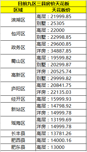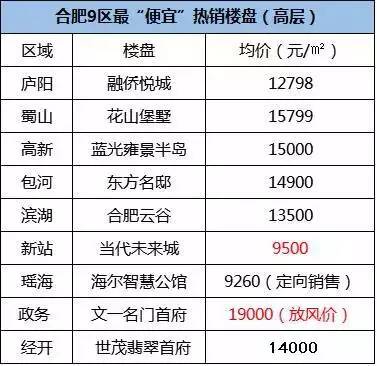 另外,从目前各区最低楼盘表来看,除了新站、瑶海以外,其余均在13500元/㎡左右。