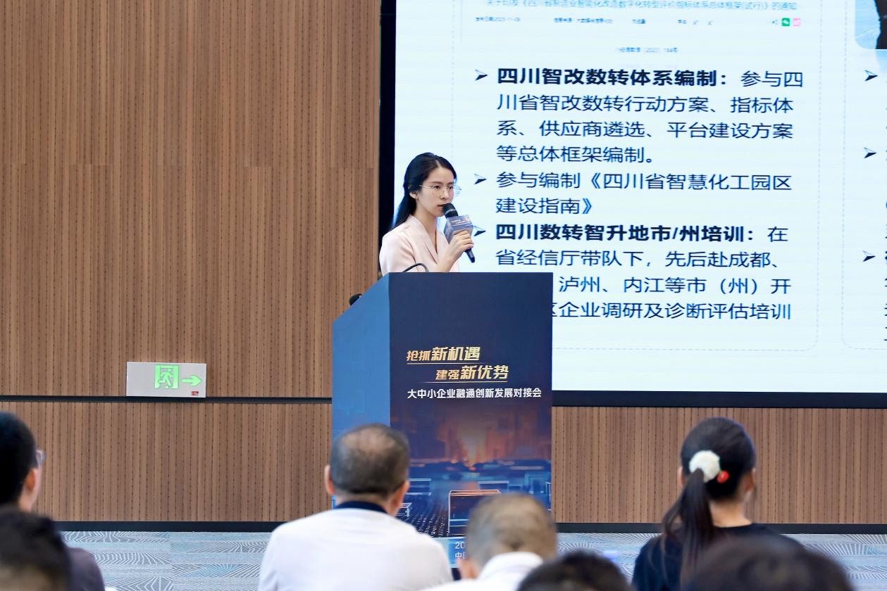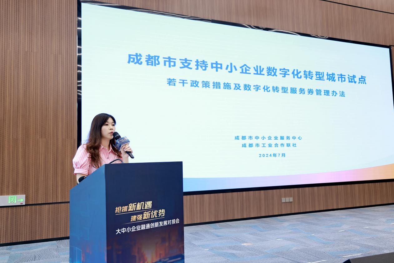 活动上,成都市中小企业服务中心(成都市工业合作联社)政策研究部政策讲师李静娟针对数字化转型,介绍了支持企业转型升级、强化转型引领成效等政策措施,分享了数字化转型服务券管理办法,并对即将出台的《成都市支持中小企业数字化转型城市试点若干政策措施》进行了说明与解读。据悉,《政策措施》由三个方面共10条组成,既有对标其他城市的创新举措,也有本地现有的政策集成,主要内容包括支持企业转型升级、强化转型引领成效、做好转型服务保障三个部分。