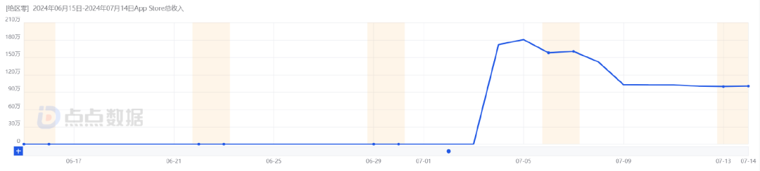 根据点点数据,《绝区零》前10天,中国大陆iOS端预估收入(扣除平台分成)约9575万元人民币,具体分时间预估收入情况,以及iOS每日最高畅销榜情况如下: