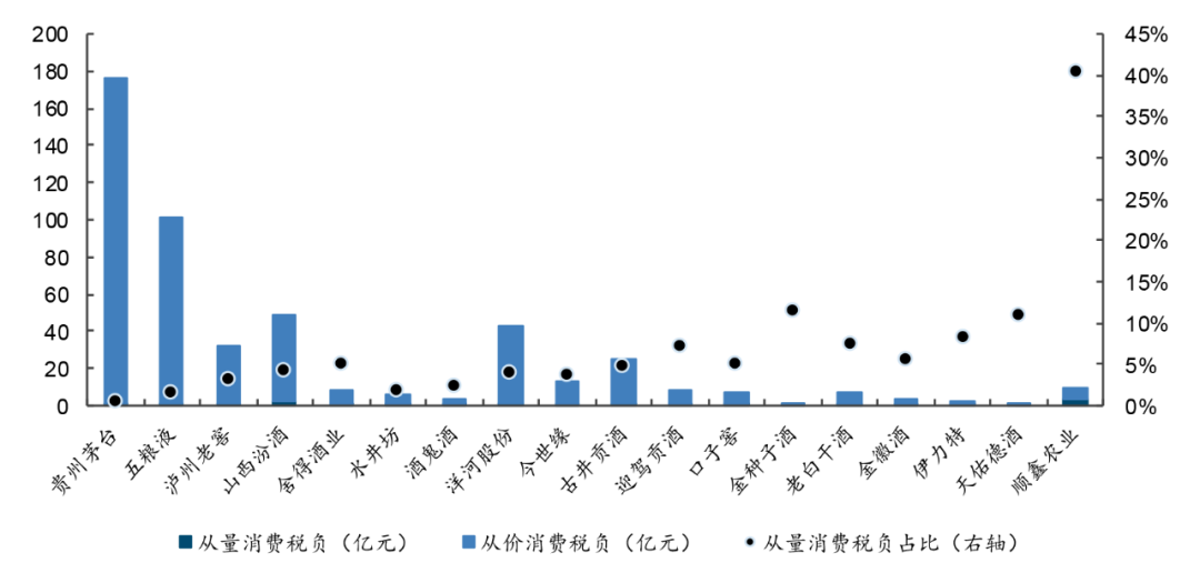 2023 年上市酒企消费税负从量&从价部分拆解(数据来源:企业公告,国金证券研究所)