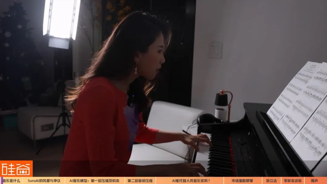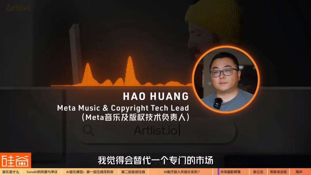 建议大家可以去视频里听听Kevin演奏的不同风格的曲子。Chapter 3.2 版权音乐和口水歌将受冲击我想了想,我会买高价票去看朗朗或者王羽佳的演奏会,但我估计不会买票去听机器人弹钢琴。那么问题来了,AI音乐,如果以现在的能力来看,它冲击的是什么市场呢?Meta Music and copyrights团队的技术负责人Huang Hao告诉我们,版权库音乐和口水歌市场将会是受到冲击的市场蛋糕。