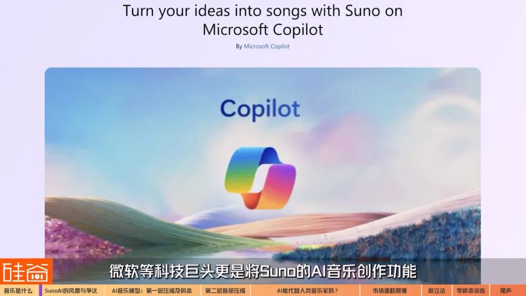 2024年5月末,总部位于波士顿的AI音乐公司Suno在社交媒体X上宣布成功完成了1.25亿美元的 B轮融资,投后估值达到5亿美元,用户数量快速增长至超过1000万。微软等科技巨头更是将 Suno的AI音乐创作功能直接整合到了旗下的Copilot产品中。