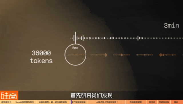 如何将音频token化,这成为了AI在音乐模型上发展的难题。直到几年前,Meta和谷歌在音频采样压缩技术上出现了技术突破,能实现将音频采样转化为更少量的token,其中的压缩幅度达到几十几百倍,因此,AI音乐的发展才开始提速。