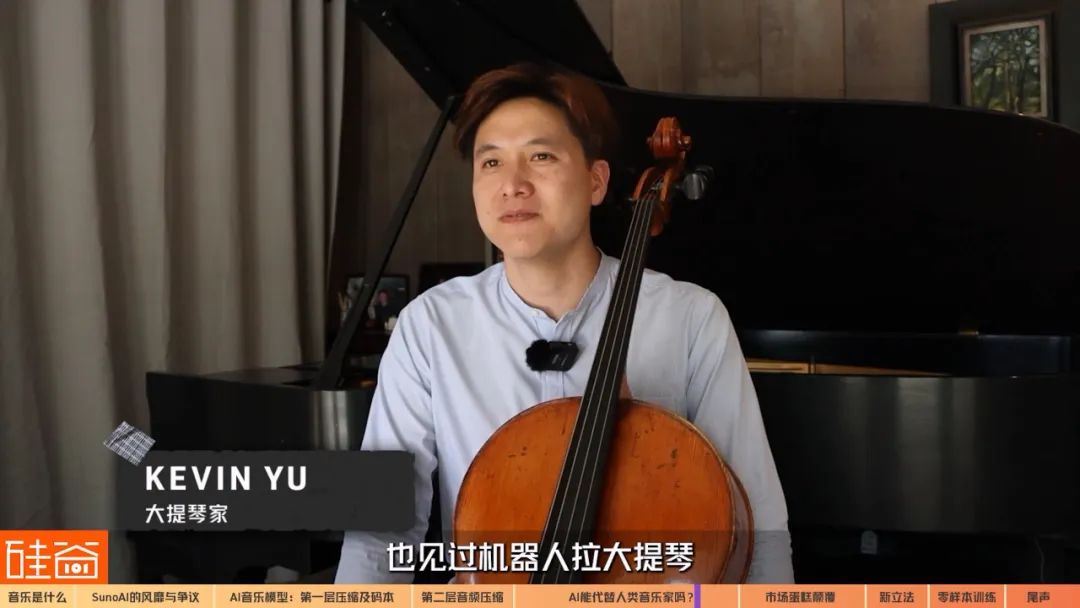Kevin Yu大提琴家我曾看过AI演奏大提琴,也见过机器人演奏大提琴。我认为它们目前只能以某种方式演奏。然而每把大提琴都有些许不同,每场演出也各不相同,每位演奏者也不同。因此,我认为AI还没有能力做到古典音乐演奏中我们所需要的某些方面,比如即兴演奏及表达。我可以演奏巴赫大提琴组曲的第一种方式是,我可以拉的很宽广,很慢,很深沉;或是带有更多动感的,更空灵的声音,那样就更有流畅感,更轻盈的声音。我敢说我很长时间不会失业。