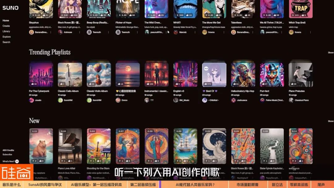 Chapter 3.1 AI能替代人类音乐家吗?在做Suno和AI音乐这个选题的前后这么几个月的时间,我自己也在尝试不同的作曲,试试各种的prompt词和调里面的变量,还是挺好玩的,我也会去听听Suno或者其它AI音乐平台的榜单,听一下别人用AI创作的歌,真的很不错。我也建议大家都去玩玩看。