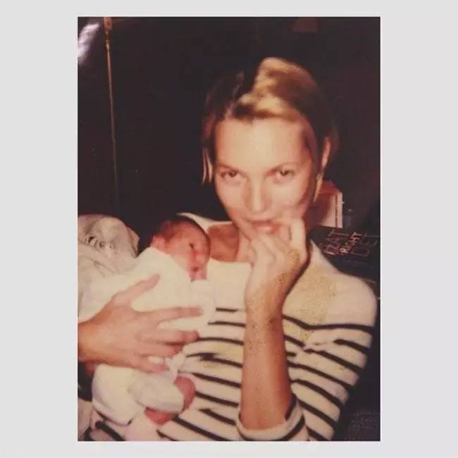 其实小妮子在时装圈里的打拼也不无道理,毕竟,人家的教母可是凯特·摩斯啊!下图中才刚出生2天就被超模加持。