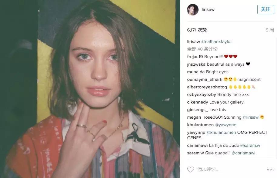 Iris那继承自男神老爸裘德·洛的蓝眼睛和演员母亲莎迪·弗罗斯特(Sadie Frost)的嘴唇让Burberry的选择一点也不令人惊讶。2000年才出生的她,2岁起就随爹妈出入Soho House,小小年纪就已经拥有Vogue大片拍摄、伦敦潮牌Illustrated People首秀及Miu Miu 2017年Lookbook的成绩。