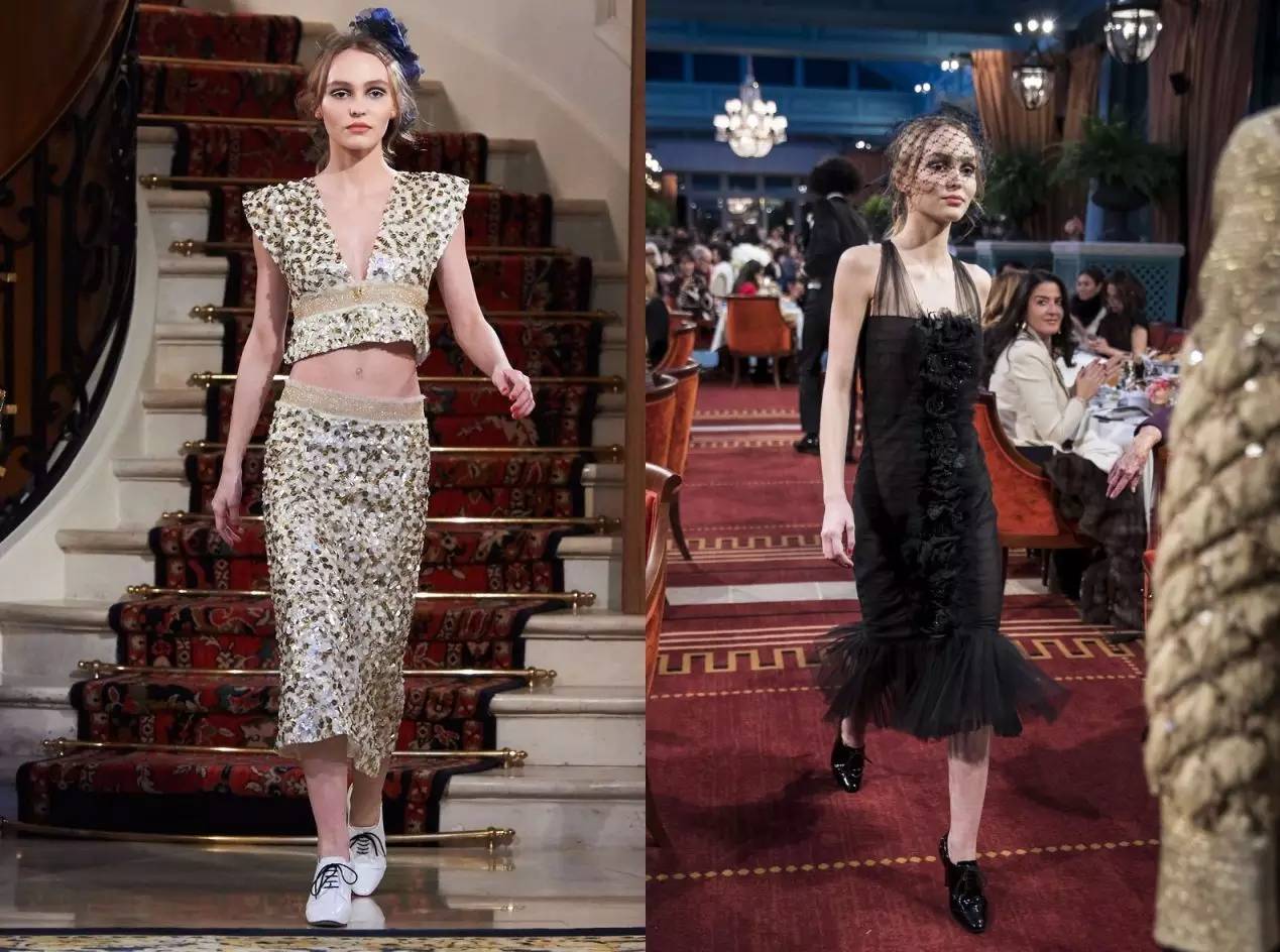 这次丽兹酒店里出入的不只有老佛爷的宠儿卡拉·迪瓦伊,还有香奈儿5号香水的最新代言人,约翰尼·德普的女儿,Lily-Rose Depp。这个17岁的小姑娘虽然是第一次走秀,但在秀场上也毫不扭捏,举手投足间都透出一股子灵气。