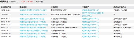 近十年来,明牌珠宝最主要的股权收购案是瑞丰银行和苏州好屋两个项目,也同样和珠宝首饰“八竿子打不着”。但是,明牌珠宝的盈利能力并没有因为这些并购而增强。