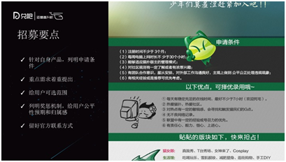 第三,管理。在产品稳定运营一段时间之后,比如说运营直升机,工作人员很少,却有很多用户相关的问题要处理,这个时候就需要有一些用户帮着做管理,至于什么用户做管理其它用户能接受呢?肯定是有影响力的核心用户。