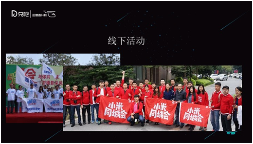 线下活动目的也是一样的,拿同城会来说,每个城市设立一个城市站长,给一些官方的礼品让他组织,管理人员就会有一种归属感,来参加活动的人也会有一定的归属感。