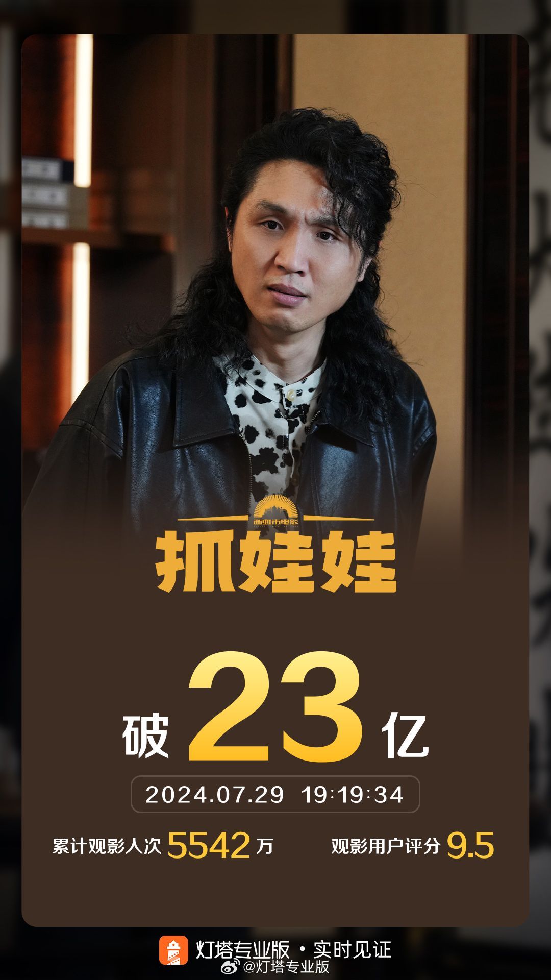 据灯塔专业版实时数据,截至7月29日19时19分,影片《抓娃娃》票房突破23亿元。