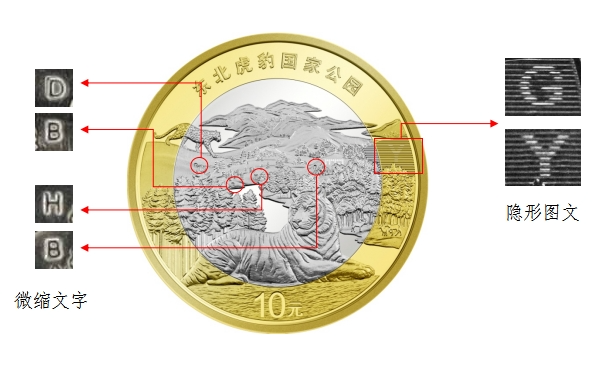 东北虎豹国家公园双色铜合金纪念币公众防伪特征整体效果如下: