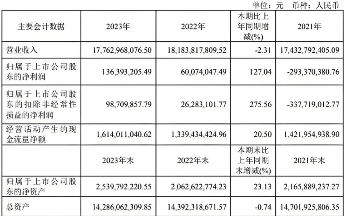 2020年,家家悦净利润达4.28亿元,2021年,这一数据下降至-2.93亿元,2023年,家家悦虽然恢复了盈利能力,但业绩依然承压。财报显示,其净利润为1.36亿元,同比增长127%,营收177.6亿元,同比下滑2.3%。