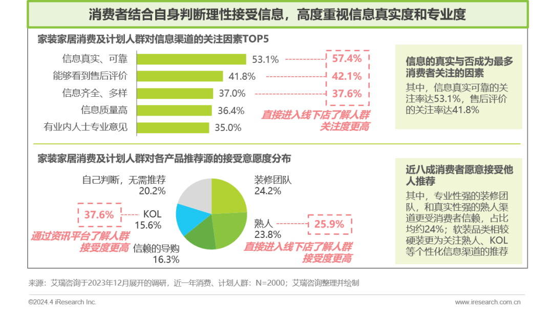 家居营销环节线上化趋势显著,真实、专业是信息渠道赢得消费者信任的关键